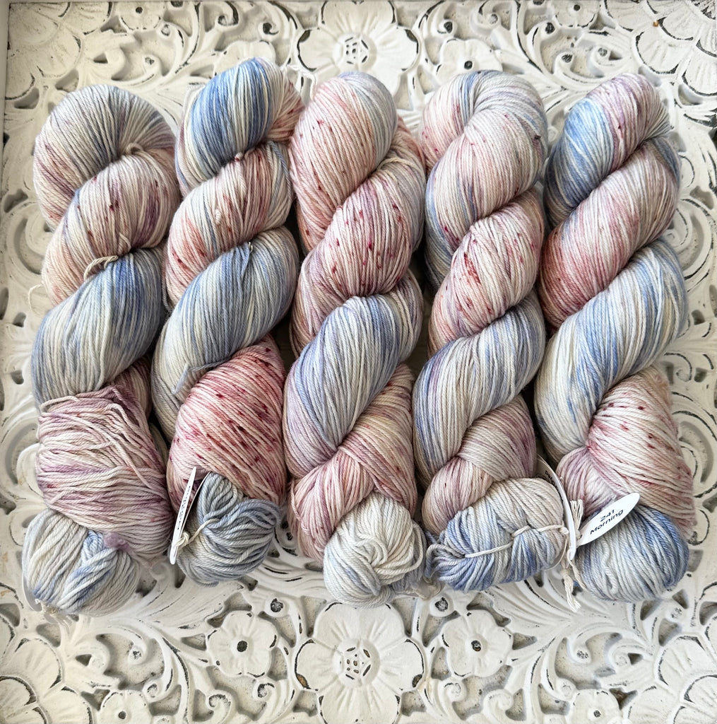 This sock yarn comes in a variety of different colour ways which are both vibrant and exciting. It would be important to consider alternative skeins as each skein is hand dyed and variegated to get the best overall look of your garment.