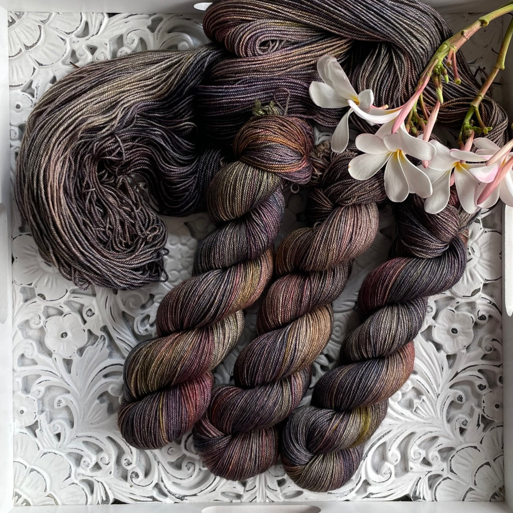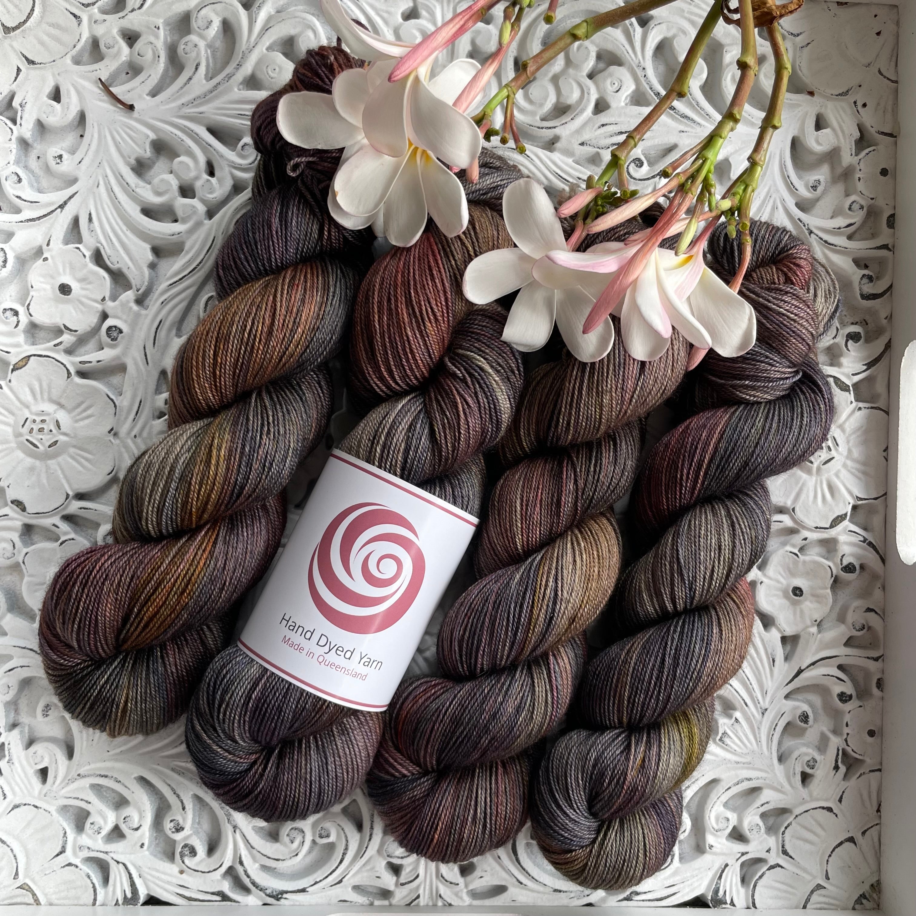 Abstract is on our 4 Ply Merino, Silk, Yak Base. It comprises of 60% Merino, 20% Silk and 20% Yak and you will get 366 metres per 100 gram skein.